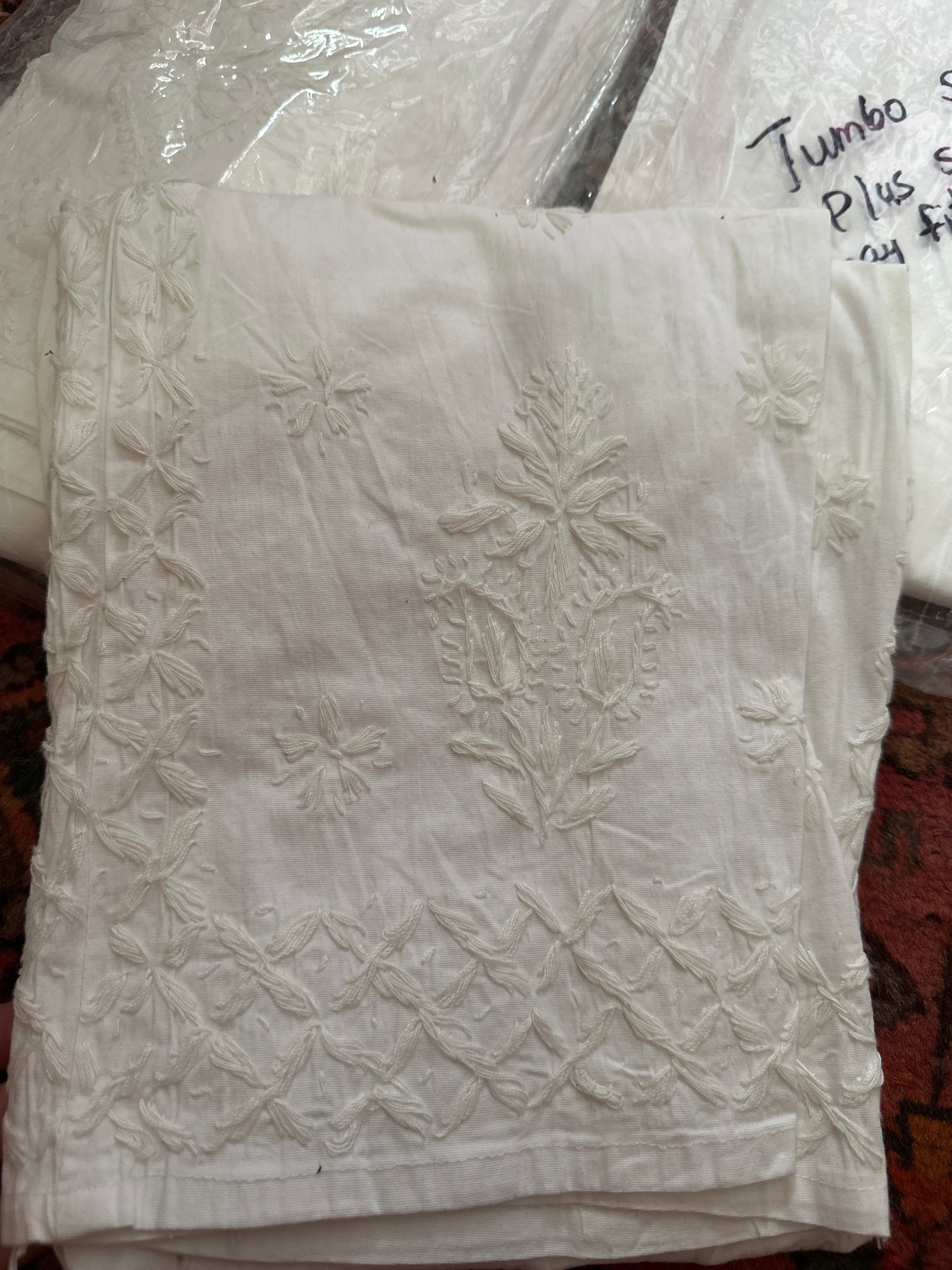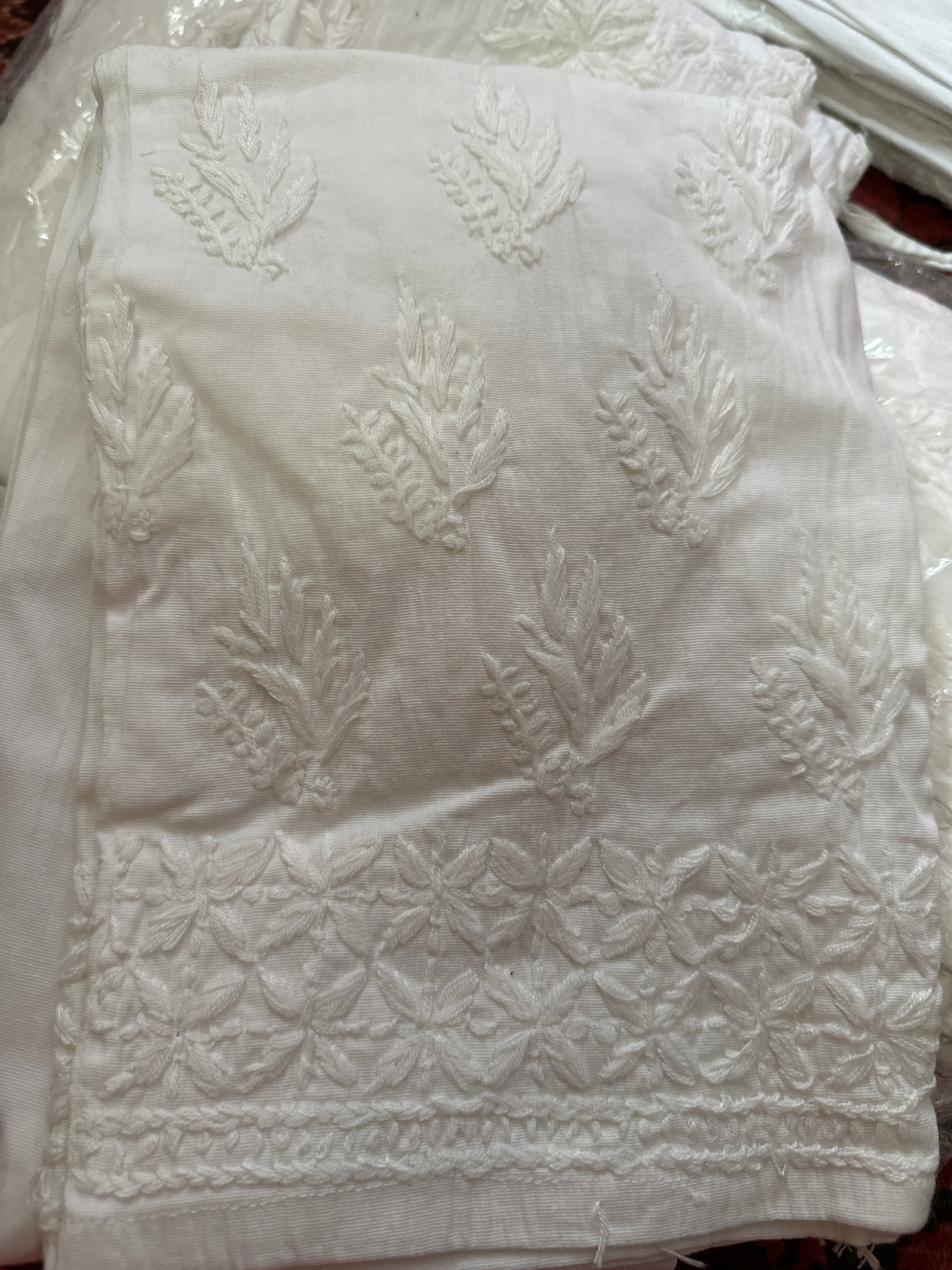 Comfortable and stretchable cotton ankle-length pants with Lucknowi Chikankari.