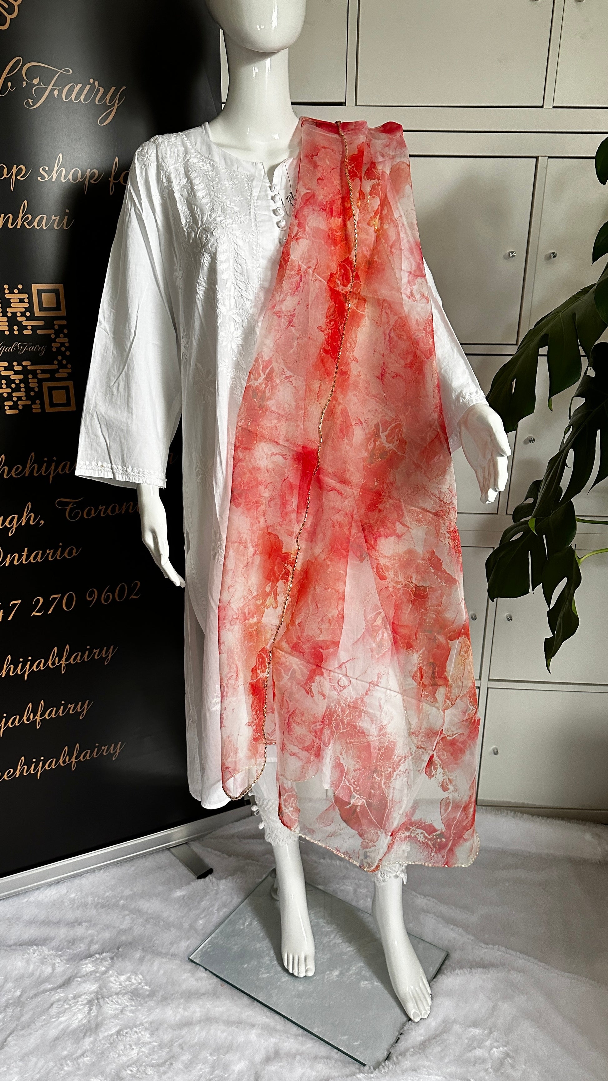 Elevate your style quotient with our digitally printed Organza Dupatta, a contemporary masterpiece that effortlessly fuses art and fashion. Measuring approximately 1 meter by 2.2 meters, this lightweight and airy piece is a canvas of vibrant, digitally printed designs that evoke a sense of modern sophistication. Crafted from luxurious organza, its delicate texture adds an element of sheer elegance to your ensemble. Whether you choose to drape it over your shoulders as a statement accessory or tie it creatively as a waist belt, this dupatta promises to elevate your look with its striking patterns and premium quality. Make a bold fashion statement with this versatile, digitally printed organza dupatta that redefines elegance for the modern woman.