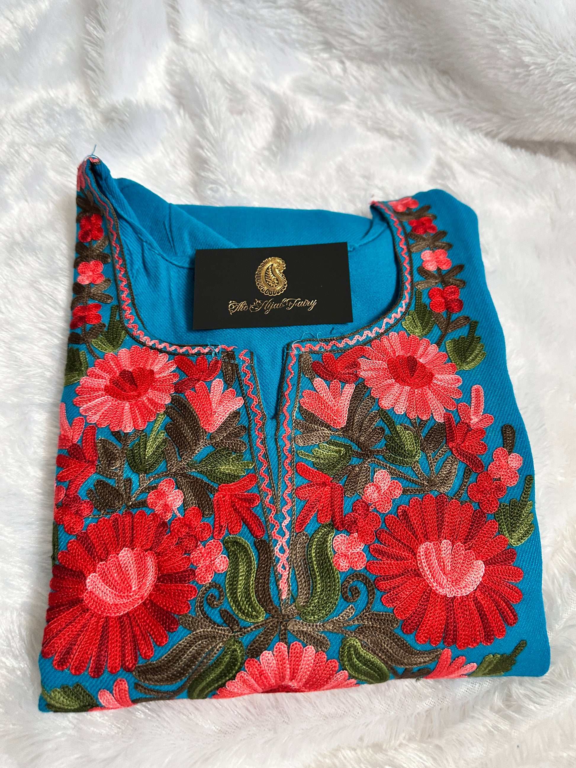 Experience the epitome of Kashmiri craftsmanship with our exquisite Pashmina Pheran. This luxurious garment offers unparalleled warmth and comfort. Its intricate embroidery and delicate detailing showcase the rich heritage of Kashmir. Perfect for special occasions or everyday wear, this Pheran is a timeless piece that will elevate your wardrobe. Embrace the beauty of Kashmir with every drape. Worn over your clothes, it's the perfect addition to your winter wardrobe.