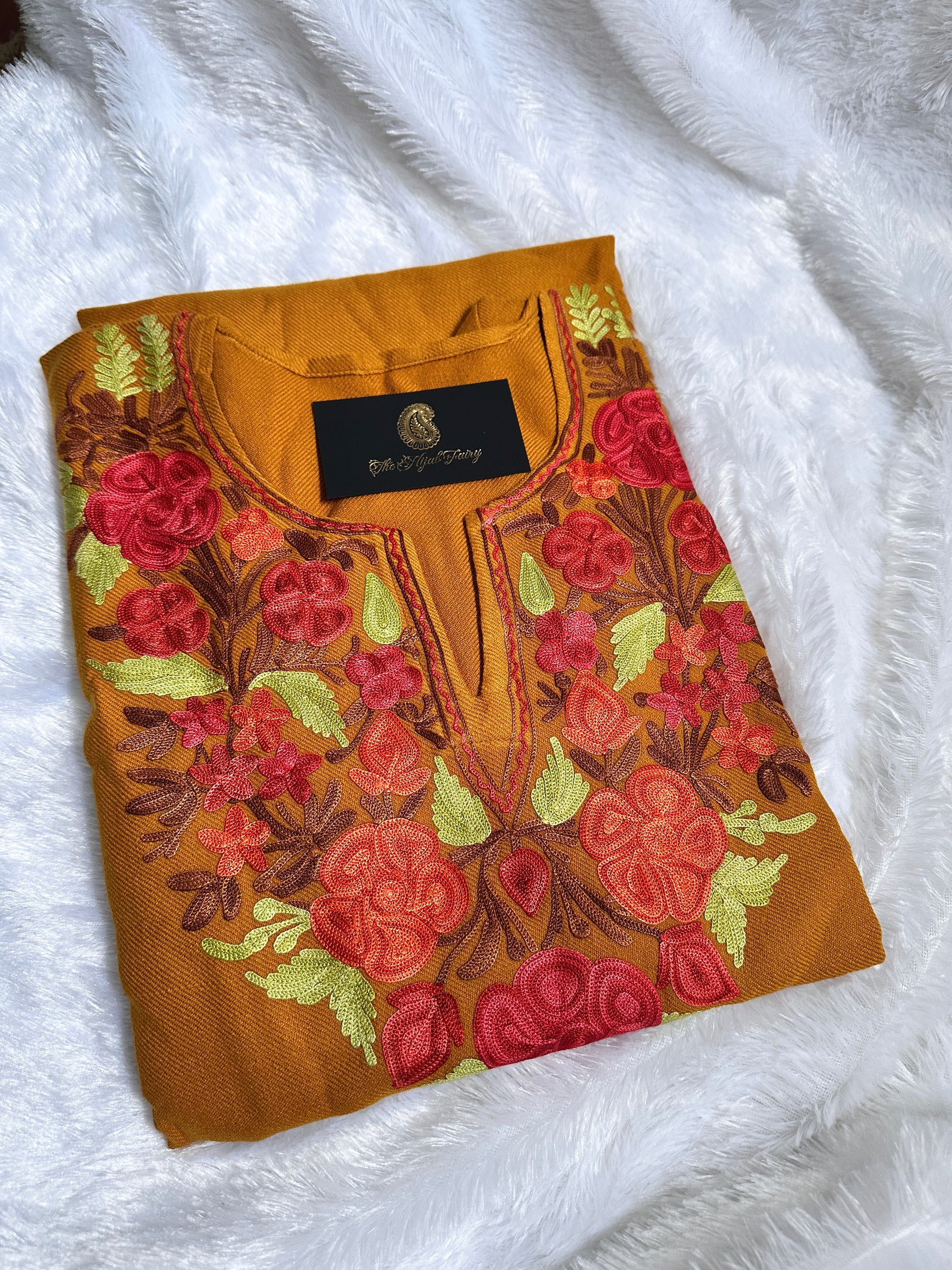 Experience the epitome of Kashmiri craftsmanship with our exquisite Pashmina Pheran. This luxurious garment offers unparalleled warmth and comfort. Its intricate embroidery and delicate detailing showcase the rich heritage of Kashmir. Perfect for special occasions or everyday wear, this Pheran is a timeless piece that will elevate your wardrobe. Embrace the beauty of Kashmir with every drape. Worn over your clothes, it's the perfect addition to your winter wardrobe.